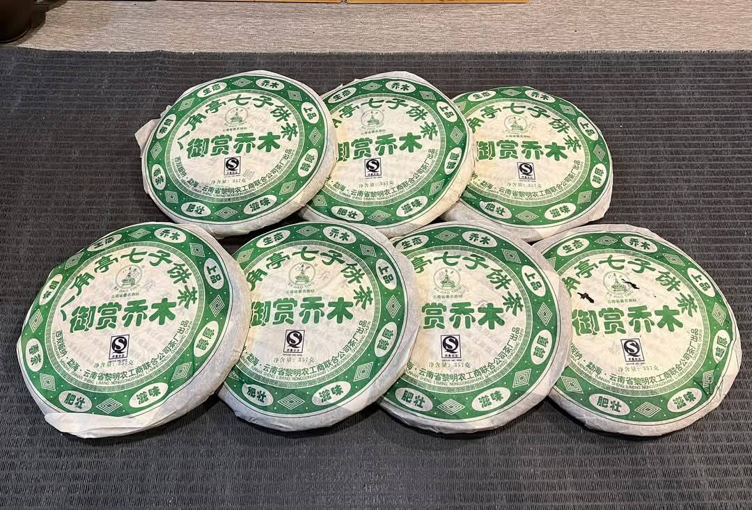 The Bajiaoting Yushang Qiaomu Qingbing was first introduced in 2006 by Bajiaoting Tea Industry Co., Ltd. (formerly Liming Agricultural, Industrial, and Commercial United Company Tea Factory). Subsequently, they released the 2006, 2007, and 2011 Yushang Qiaomu Qingbing (357g); the 2006 and 2007 Yushang Qiaomu Fangzhuan (Square Brick, 100g); the 2007 Yushang Qiaomu Tuo (200g); and the 2011 Yushang Qiaomu Fangzhuan Gift Box (5x100g), among others. Among these, the first batch from 2006, the Yushang Qiaomu Qingbing, is considered to have the best selected materials and the finest taste.